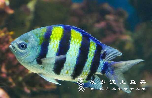 条纹豆娘鱼(Abudefduf vaigiensis)又称五带豆娘,五线豆娘,为鲈形目、雀鲷科、豆娘鱼属一种热带海水鱼类。条纹豆娘鱼分布于印太海域各大陆沿岸及海岛珊瑚礁区,为产量较大的习见鱼类,多活动于近海珊瑚礁附近,觅食礁石区的细小猎物,可作为观赏鱼。...