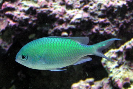 蓝绿光鳃鱼,Chromis viridis,蓝绿雀鲷,青魔 lán lǜ guāng sāi yú